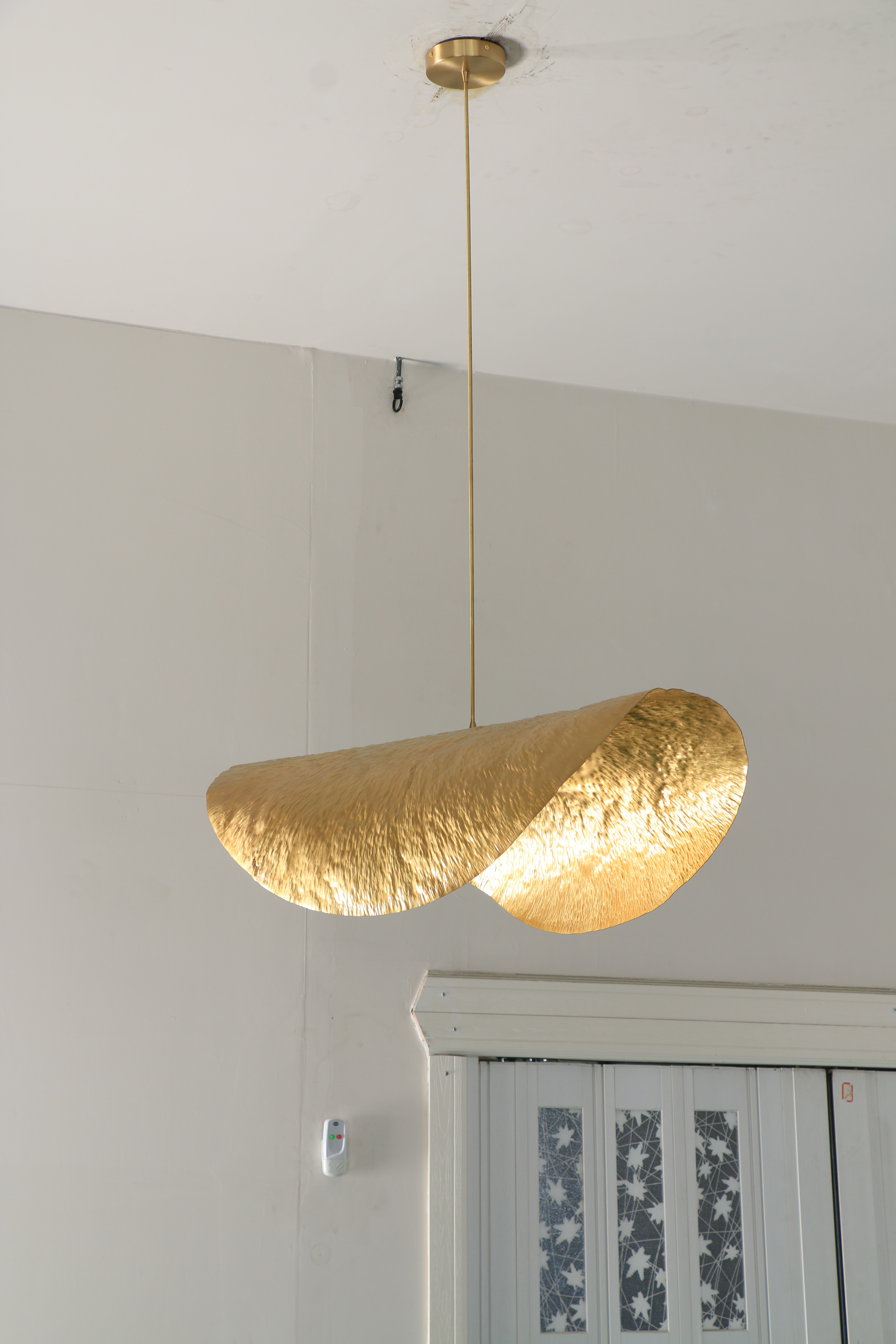 Disponível em acabamentos totalmente de cobre ou ouro de latão, esta luz pendente exala uma vibração de luxo pós-moderna, perfeita para moradias, salas de estar ou salas de jantar.O design único da folha de lótus acrescenta elegância e criatividade a qualquer espaço.