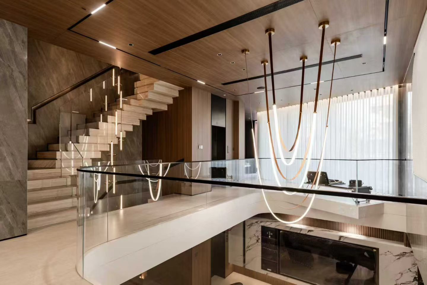 Engineered with stainless-steel support cables, sealed marble beads, tempered glass, and multi-layer electroplated gold finishes for long-term reliability.